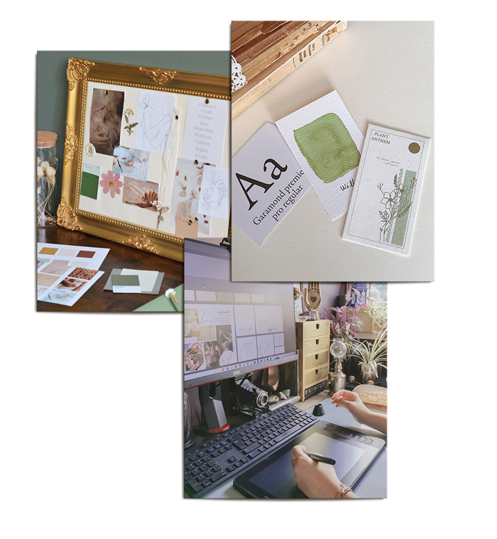 Aujourd’hui, je me sens pleinement à ma place : mon travail me permet d’allier créativité et sensibilité en accompagnant des entrepreneurs passionnés. Je conçois des identités visuelles qui reflètent à la fois leur singularité et leurs valeurs, tout en honorant les miennes. Inspirée par la nature et attentive aux détails, j’accorde une grande importance à la simplicité, à la durabilité et à l’élégance dans chacune de mes créations.